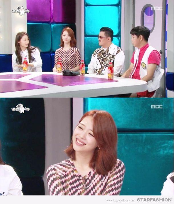 ▶ 한밤의 안방마님의 품격 ‘수영의 블루 블랙’ : 수영은 지난 8월 7일 방송된 SBS ‘한밤의 TV연예’에서 블루와 블랙 컬러가 가미된 지그재그 패턴 원피스로 위트 있게 연출했다. 여기에 그녀는 길게 늘어트린 웨이브 헤어스타일로 고혹적이면서도 모던한 분위기를 자아냈다.