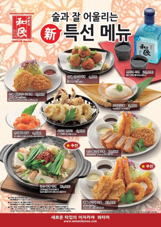 더운 여름철 잃어버린 입맛을 자극하는 얼큰한 규슈 곱창 나베와 매콤한 연어명란무침을 필두로 시원한 맥주와 어울리는 믹스후라이모듬, 해물후라이모듬, 와타미 특제 소스를 더한 명란치즈고로케 등을 출시, 메뉴의 맛과 품질을 한층 강화해 선보인다.