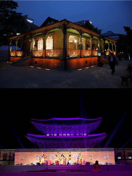 | ▲(위로부터) 덕수궁 정관헌 야경, 무고공연 |