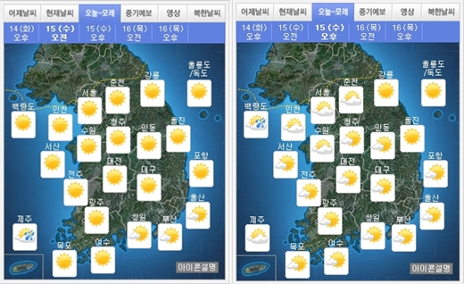 15일 오전, 오후 날씨 /제공=기상청
