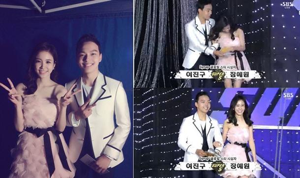 장예원 아나운서는 22일 자신의 페이스북에 “가요대전”이라는 글과 함께 한 장의 사진을 게재해 또다시 눈길을 끌었다. 공개된 사진 속에서 장예원 아나운서는 여진구와 함께 브이를 그리며 미소 짓고 있다. 장예원 아나운서는 분홍색 미니 드레스로 깜찍함을 더했고, 여진구는 흰색 재킷으로 멋을 낸 모습이다.