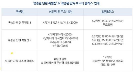 특별 초청 프로그램의 하나로 마련된 '류승완 단편 특별전'에서는 2000년 옴니버스 장편으로 개봉한 <죽거나 혹은 나쁘거나>부터 2014년 3D영화 <유령>까지, 류승완 감독의 대표 단편영화들이 상영된다.