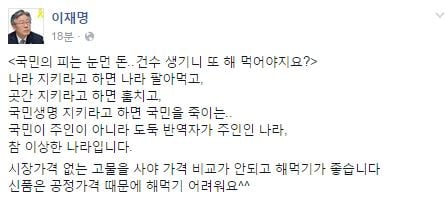 이재명(새정치민주연합) 성남시장이 논란이 되고 있는 대잠 초계기 '바이킹' 도입과 관련해 입장을 밝혔다.