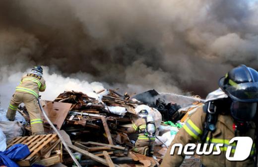 ‘서해대교 소방관’ ‘순직 소방관 예우’ 지난 10월25일 경북 안동시 수하동의 한 고물상에서 원인을 알 수 없는 화재가 발생해 소방관들이 진화에 나서고 있다. /자료사진=뉴스1