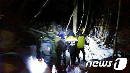 ‘덕유산 등산객 조난’ 지난 16일 오후 6시쯤 경남 거창군 북상면 소정리 남덕유산 지봉헬기장 인근에서 부산 모 산악회 소속 회원 27명이 조난 되어 12시간만인 17일 오전 6시쯤 구조됐다. /사진=뉴스1(거창소방서 제공)