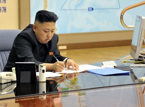 '김정은 신년사' 지난 2013년 조선중앙통신이 공개한 김정은 집무실. /자료사진=조선중앙통신