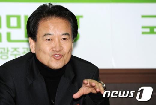 '정동영 김종인' 국민의당에 합류한 정동영 전 통일부 장관이 22일 오전 광주 서구 치평동 광주시당에서 열린 20대 총선 예비후보 간담회에서 모두발언하고 있다. /사진=뉴스1
