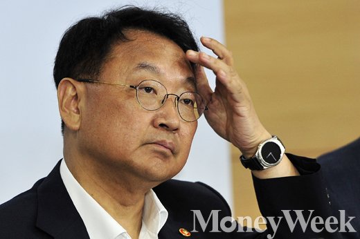 | 8일 서울 종로구 정부서울청사에서 열린 구조조정 관련 경제관계장관회의 합동브리핑에서 유일호 경제부총리가 고심하는 표정을 보이고 있다. /사진=임한별 기자 |
