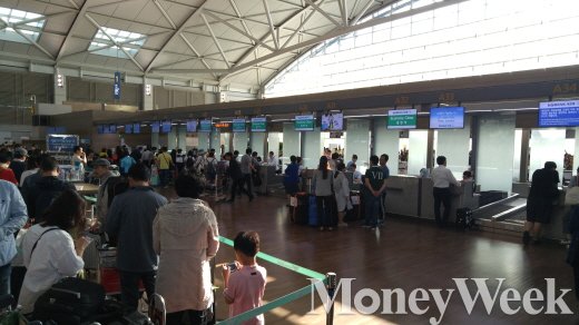 인천공항 체크인 카운터의 모습. 이곳에서 티케팅을 한 뒤 보안검색대를 지나야 한다. /사진=박찬규 기자