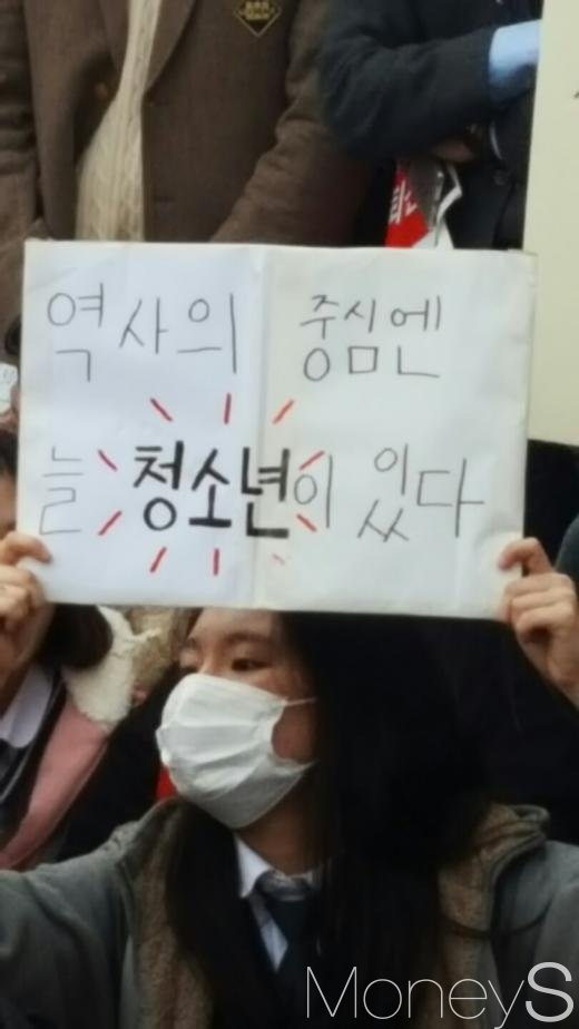 이들은 ‘내가 이러려고 12년 공부했나’., ‘이런 나라에서 공부를 해도 아무런 희망이 없습니다(D-12)’, ‘역사의 중심엔 늘 청소년이 있다’, ‘고3인 우리는 연필대신 촛불을 들었습니다’, ‘박근혜는 하야하라’, ‘#하야하라 박근혜’ 등의 피켓을 들었다.