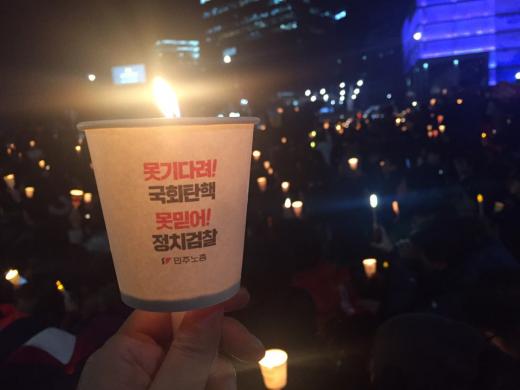 26일 오후 제6차 촛불집회에 참석한 시민들이 본 집회행사에 앞서 서울 광화문에서 목소리 높여 박근혜 퇴진을 외치고 있다.