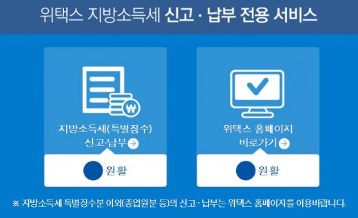 한편 위택스는 행자부 주관 전국통합 지방세포털서비스로, 재산세 주민세 자동차세등 구청이나 군청 세무과에서 부과하는 지방세를 온라인으로 조회·납부하는 시스템이다.