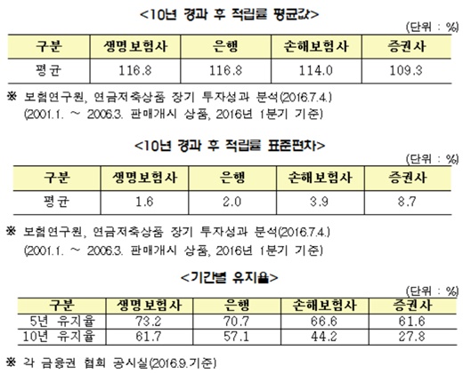 생보협회는 “생명보험사 연금저축보험의 경우 사망 시까지 연금을 수령할 수 있다”며 “종신보장성, 수익률(적립률), 안정성, 유지율 등에서 강점이 있다”고 설명했다.