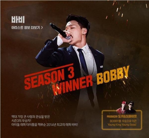 씨잼, 바스코, 올티, 아이언, 기리보이 등 실력파 래퍼 등을 제치고 당당히 시즌3 우승 타이틀을 거머쥔 이는 아이돌 ‘IKON(아이콘)’의 멤버 바비. 바비의 우승을 통해 ‘아이돌 래퍼는 실력이 없다’라는 인식을 없앨 뿐만 아니라, YG엔터테인먼트의 위력을 확실히 보여줬다. 이후 바비는 자신이 속한 아이돌그룹 이름이 아닌 ‘바비’라는 이름으로 더 많이 불리고 있다.