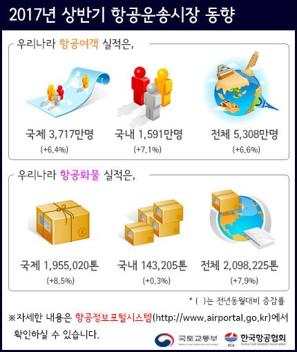 국토부 관계자는 "여름휴가와 추석 연휴 등 본격적인 성수기에 진입했고 저비용 항공사의 공급력 확대, 항공 노선 다변화 등을 감안하면 하반기에도 항공여객 성장세가 계속될 것으로 보인다"고 전망했다.