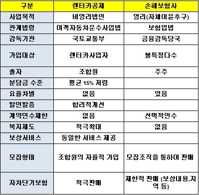 | 렌터카공제조합과 손해보험사 보험서비스 비교./자료=전국렌터카공제조합 |