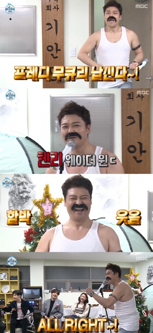 압권은 전현무. 퀸의 프레디 머큐리를 패러디한 모습으로 등장해 좌중을 압도하는 퍼포먼스로 멤버들과 시청자들로부터 커다란 호응을 얻었다.