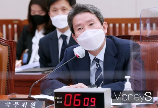 이인영 통일부 장관이 23일 서울 여의도 국회 본관 외교통일위원회 회의실에서 열린 통일부ㆍ북한이탈주민지원재단ㆍ남북교류협력지원협회 등 2020 종합감사에 출석, 질의에 답변하고 있다.