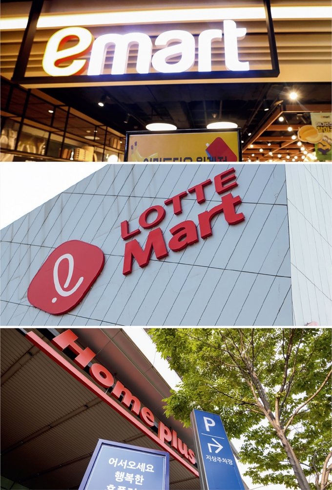 | (위쪽부터)이마트, 롯데마트, 홈플러스. 사진=뉴스1 |
