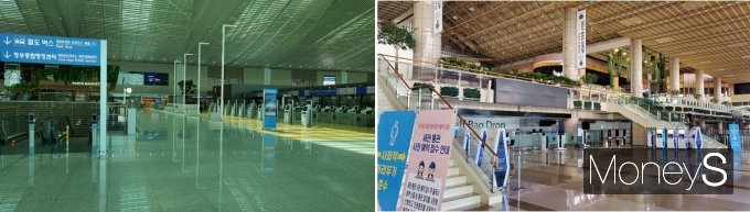 | 활기 잃은 인천국제공항(좌)과 김포공항 국제선 모습./사진=지용준 기자 |