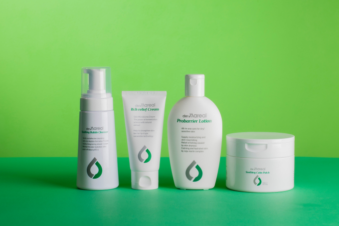 제품 라인은 ▲더마리얼 수딩캄패치 ▲더마리얼 이치릴리프크림 ▲더마리얼 프로베리어로션 ▲더마리얼 수딩버블클렌져 등 4종으로 온라인을 통해 구매가 가능하다.