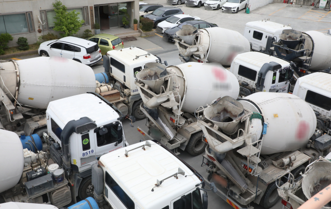 시멘트협회가 시멘트 운반용 벌크시멘트트레일러(BCT)를 표준운임제 대상에서 제외해야 한다고 밝혔다. 사진은 부산 사하구 한 레미콘 공장에 정차된 레미콘 트럭. /사진=뉴스1