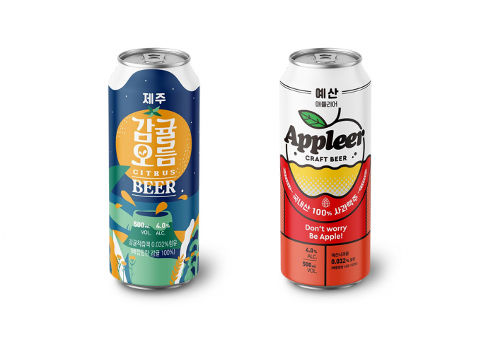 새로 출시된 캔맥주 애플리어, 감귤오름은 농가상생의 일환으로 지역특산물을 활용한 점이 눈길을 끈다. 예산 사과, 제주 감귤 등을 활용해 차별화된 맛뿐 아니라 지역 농산물 소비 촉진의 의미를 담았다.