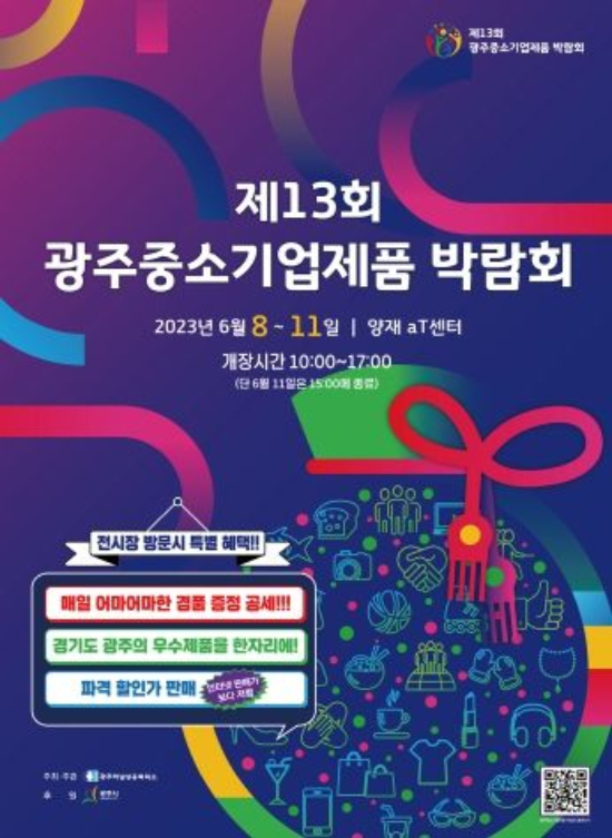 경기 광주시와 광주하남상공회의소는 8일부터 11일까지(4일간) 제13회 광주중소기업제품 박람회를 서울 양재동 aT센터에서 개최한다고 2일 밝혔다.