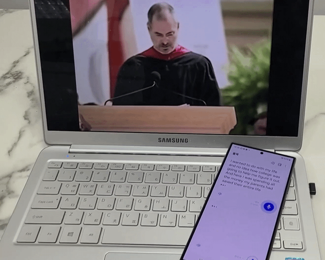 통번역 성능을 알아보기 위해 고 스티브 잡스 애플 창업자의 2005년 스탠포드대학교 졸업 축사 영상을 활용했다. 스티브 잡스는 정확한 발음과 적당한 속도로 연설하는 것으로 알려져 영어를 공부하는 이들에게 그의 연설문은 학습 자료로도 사용된다. 해당 축사 전체를 통번역하는 것은 어려웠다. 축사 도중 공백이 발생할때 통번역 기능이 실행됐기 때문이다.