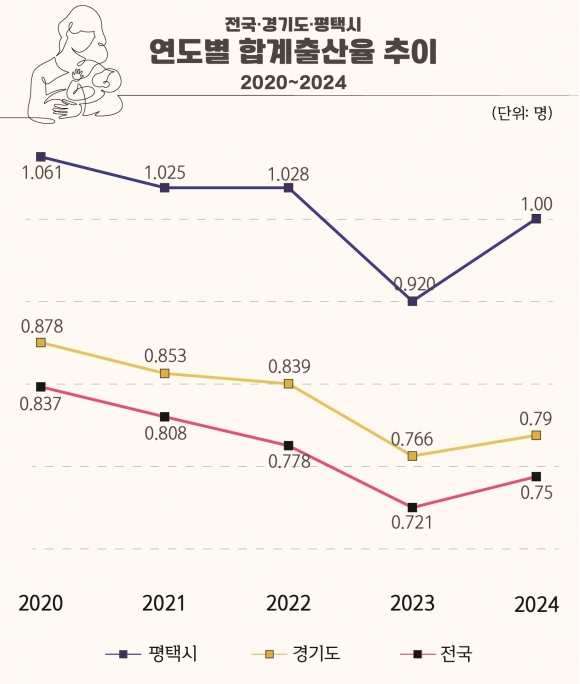 평택시(시장 정장선)의 지난해 합계출산율이 직전 연도보다 반등한 1.0명을 기록했다.