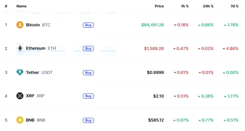 시총 2위인 이더리움은 24시간 전에 비해 0.02%, 시총 3위인 테더는 24시간 전에 비해 0.01% 떨어졌다. 반면 시총 4위인 리플은 24시간 전에 비해 0.36%, 시총 5위인 바이낸스는 24시간 전에 비해 0.77% 상승했다.