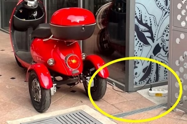 한 여성이 카페에서 전선을 문밖으로 빼내 전동 오토바이를 충전하는 모습이 포착됐다.