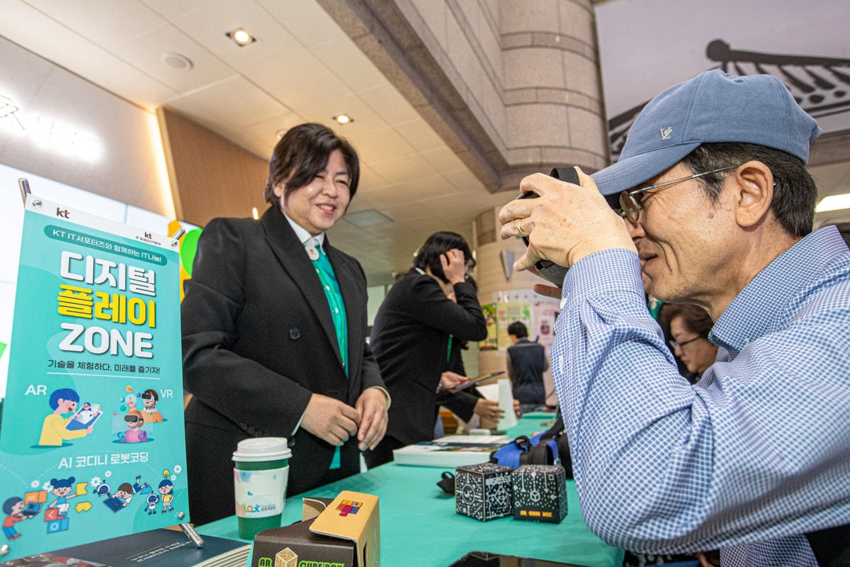 또한 주식회사 KT의 'IT-서포터즈'는 선배시민의 눈높이에 맞추어 생활 속에서 유용한 인공지능 활용과 VR/AR 시뮬레이션 등 첨단 기술을 실시간으로 체험할 수 있는 부스를 운영했다.