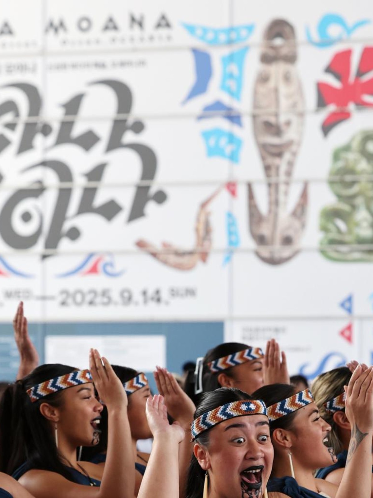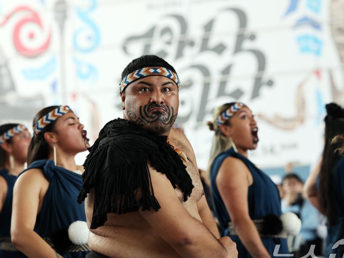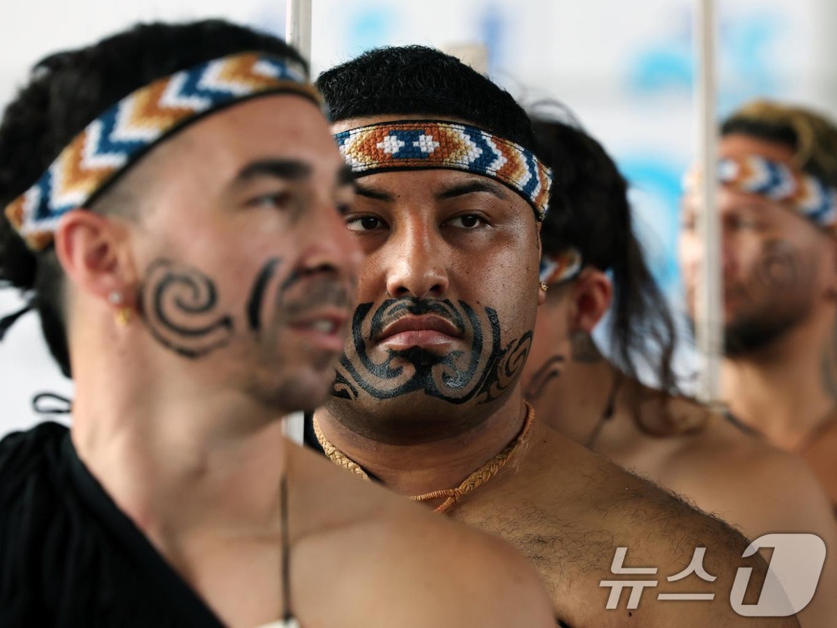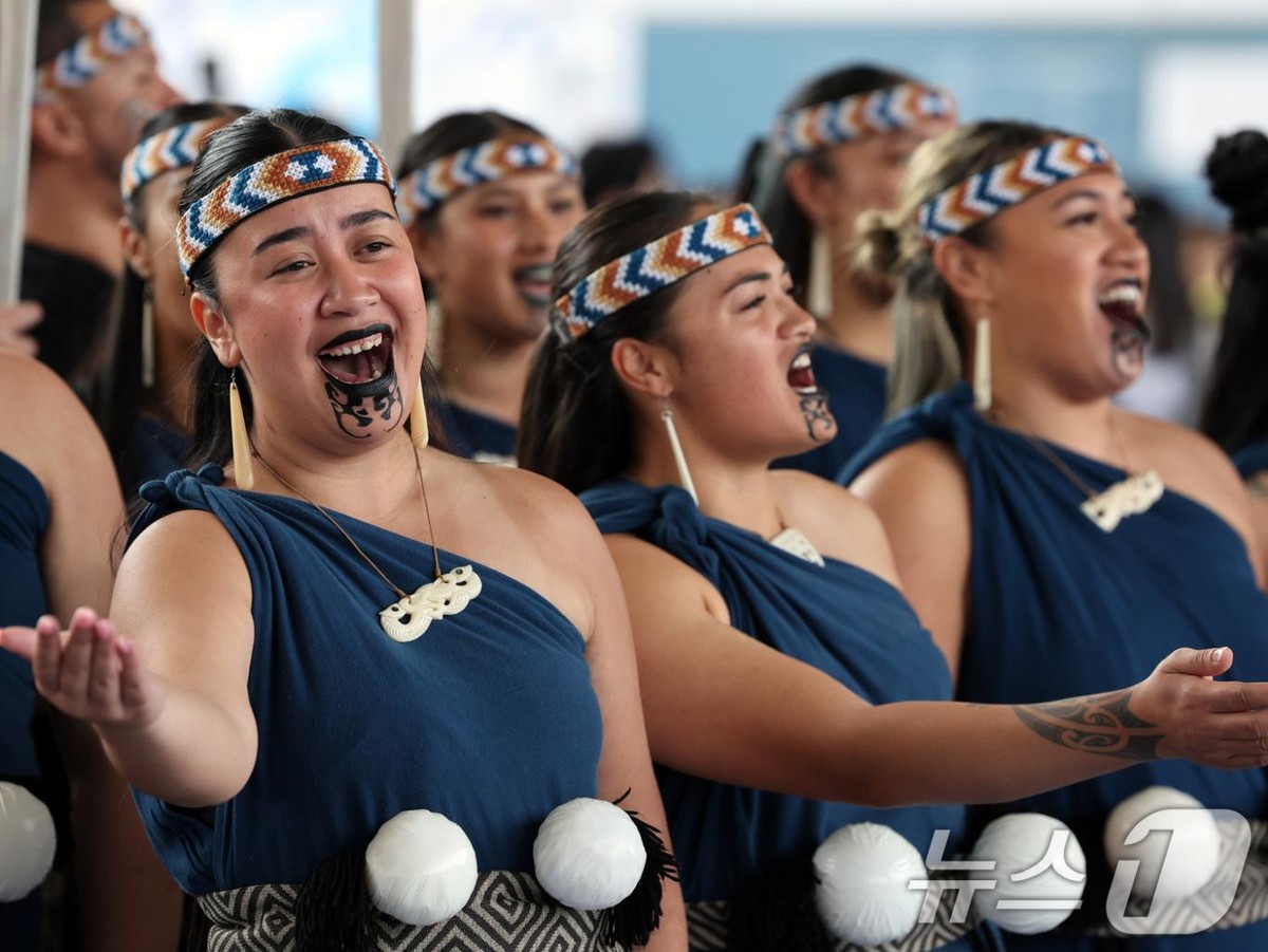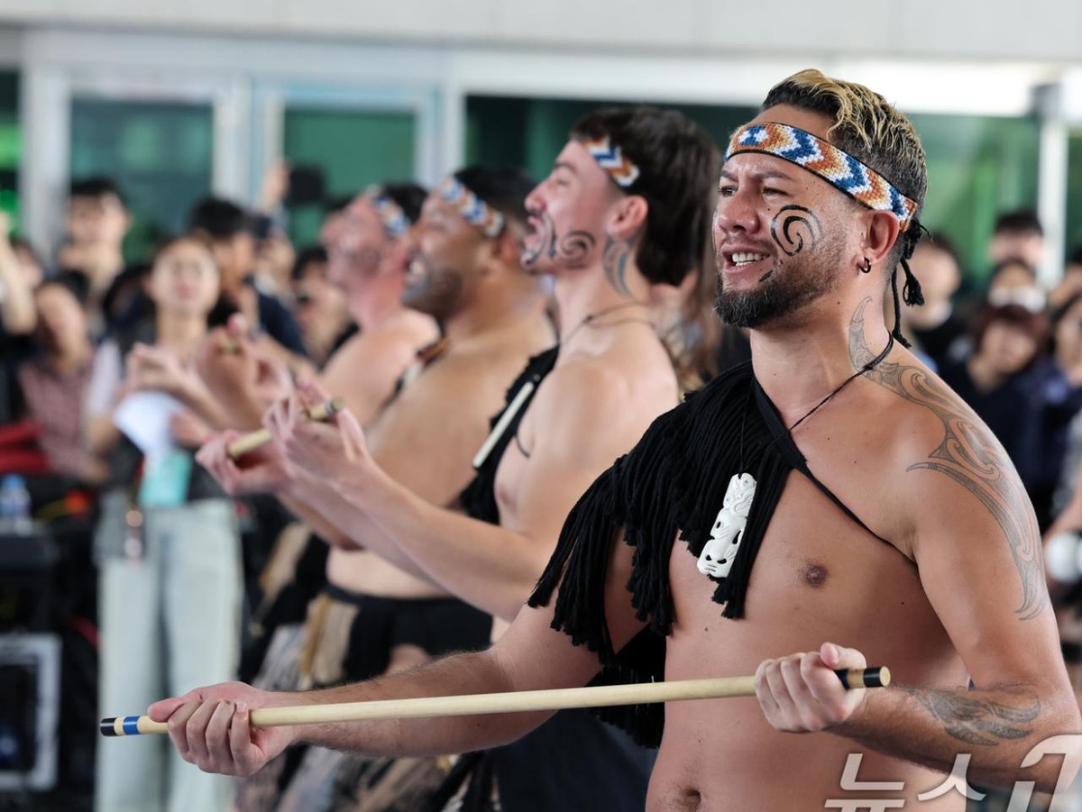 (서울=뉴스1) 황기선 기자 = 국립중앙박물관과 주한 뉴질랜드대사관은 공동으로 26일 오후 서울 용산구 국립중앙박물관 열린마당에서 특별전 '마나 모아나-신성한 바다의 예술, 오세아니아'를 기념해 '마오리 카파 하카' 공연을 선보였다.