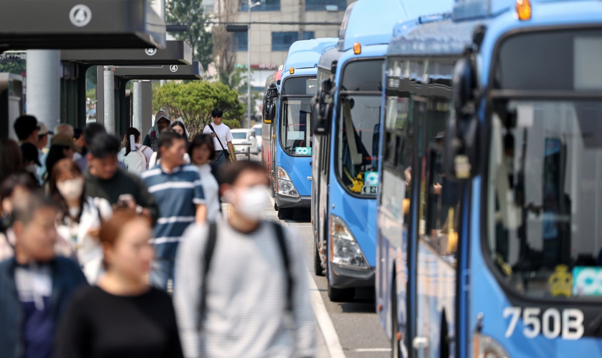.총 파업을 예고 했던 서울시내버스노동조합이 파업을 유보하기로 결정했다. 사진은 서울시버스노동조합의 총파업 예고일을 앞둔 지난 27일 서울 중구 서울역 버스환승센터에서 시민들이 버스를 이용하고 있는 모습. /사진=뉴스1
