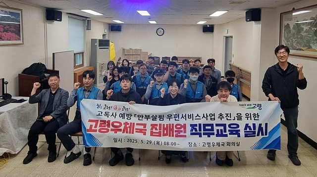 고령군은 지난 29일 고령우체국 회의실에서 우체국 집배원 19명을 대상으로 '안부살핌 우편서비스 사업' 추진을 위한 개인정보 보호 등 직무 교육을 실시했다.