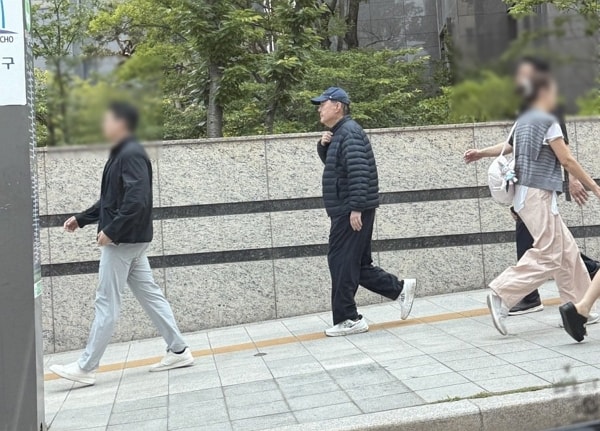 사진은 차에 타고 있던 한 시민이 촬영한 것으로 추정된다. 글쓴이는 "친구가 집 앞에서 봤다며 보내줬다. 근데 안 덥나?"라고 적었다. 이날 서울 최고 기온은 29도까지 올랐는데 윤 전 대통령은 남색 모자를 쓰고 검은색 패딩에 검은색 바지, 흰색 운동화를 착용했다. 주변인들 옷차림이 가벼워진 것과 대비되는 모습이 눈길을 끈다.