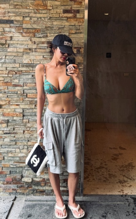 사진 속 김준희는 화려한 패턴의 비키니를 입고 회색 팬츠를 덧입어 편안한 룩을 자랑했다. 그는 글래머러스한 몸매와 탄탄한 복근을 뽐내 눈길을 사로잡았다.
