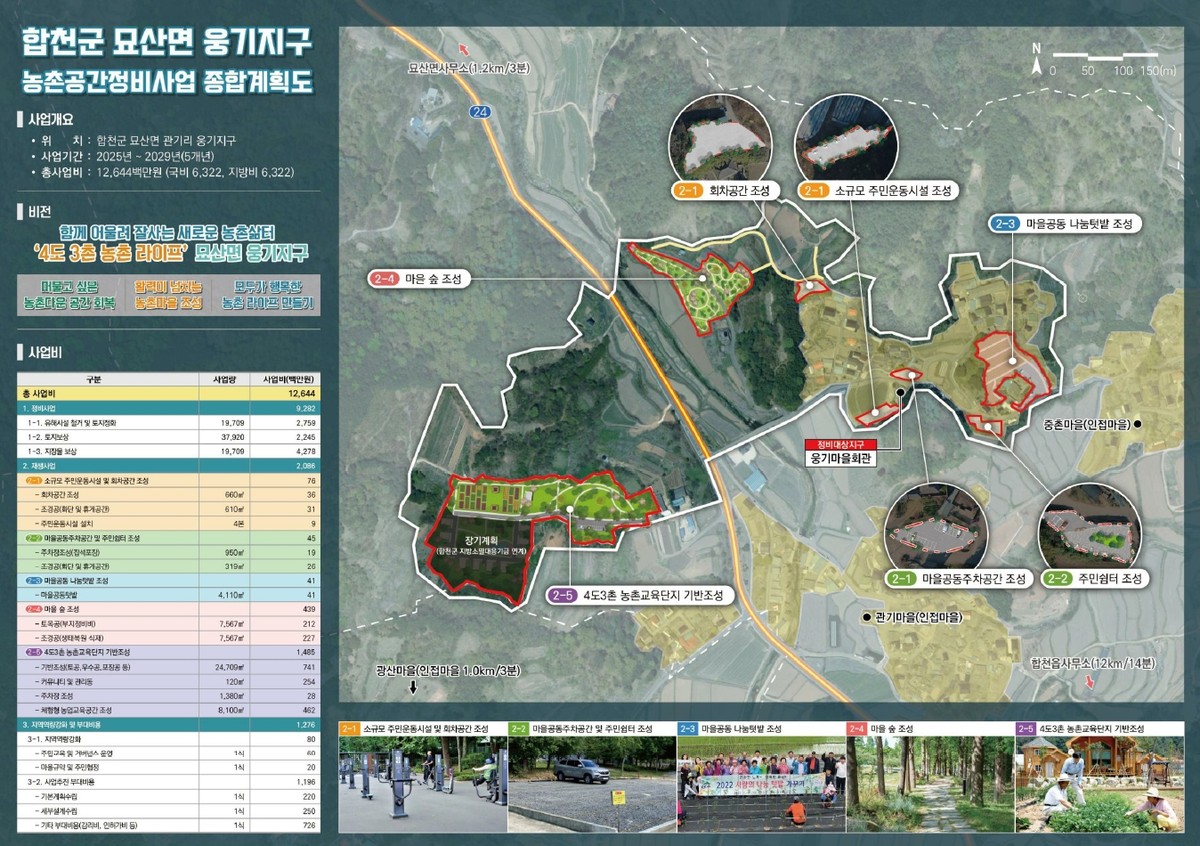 또한 농촌공간정비사업에서는 가야·가회·야로·묘산면 등 4개 지구가 선정돼 544억원의 예산을 확보했다. 이 사업은 축사, 공장, 빈집 등 위해시설을 정비하고 정주환경을 획기적으로 개선하는 사업이다.