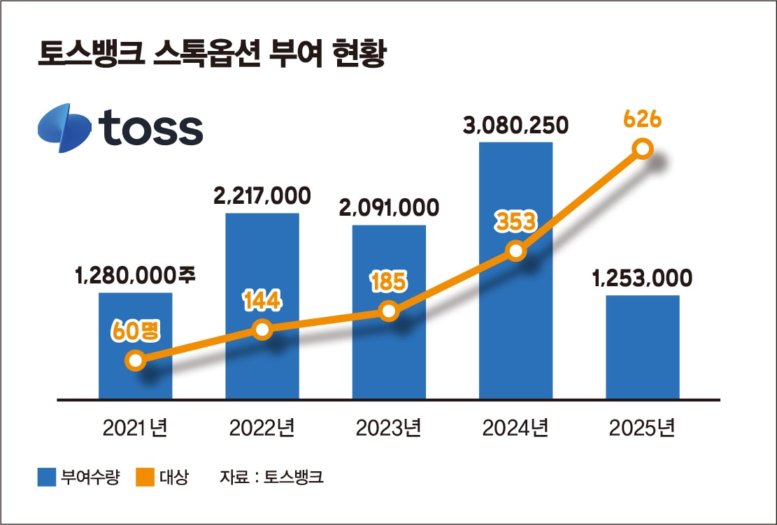토스뱅크가 올 상반기 역대급 실적을 거둔 가운데 자사 임직원에게 주식매수선택권(스톡옵션)을 부여했다. 은행권 최고연봉을 받는 직원 충성도를 한층 더 제고하려는 행보다.