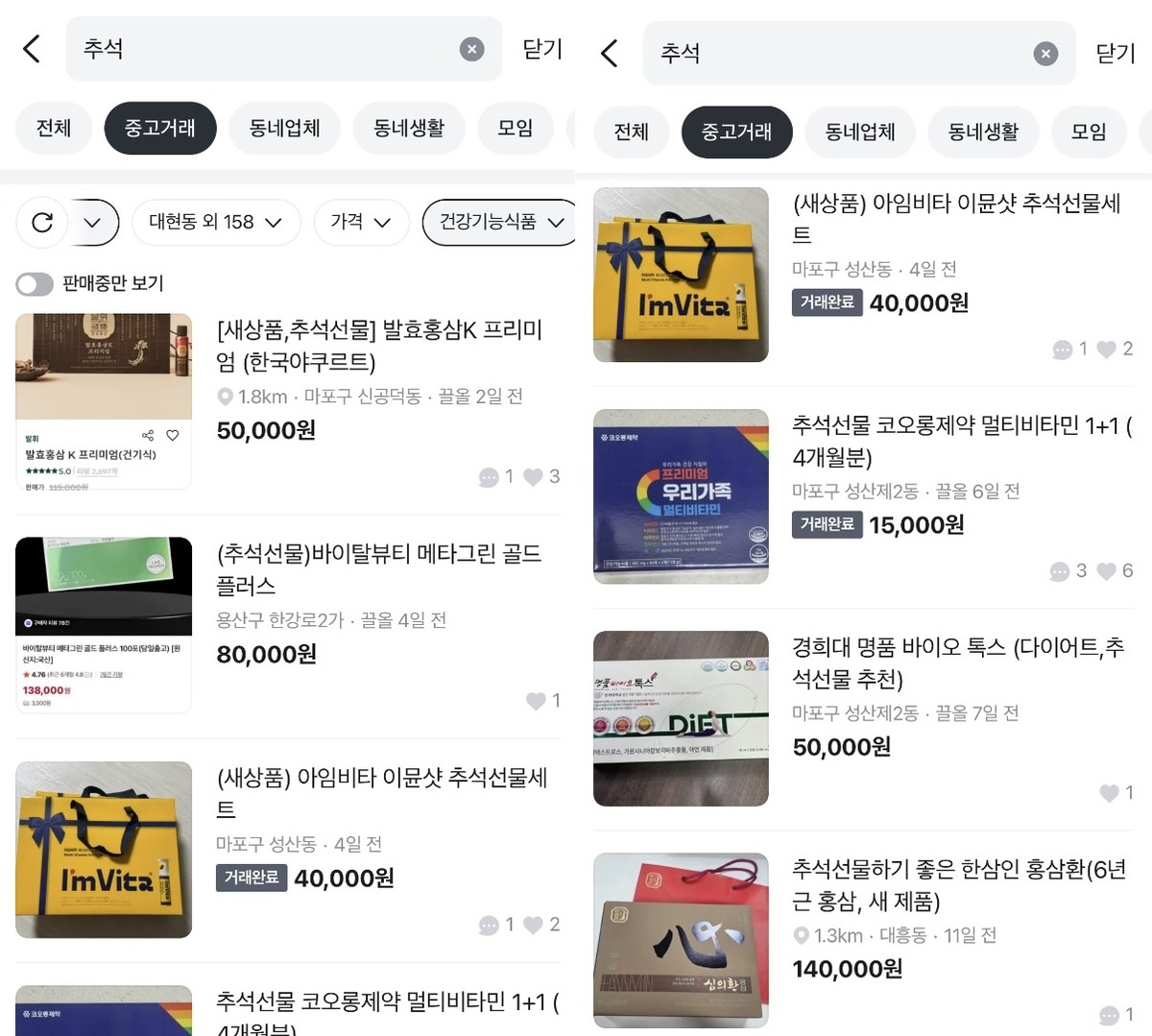 홍삼, 비타민, 유산균 등 추석 단골 선물인 건강기능식품의 중고거래가 활발해지고 있다. 중고거래에 있어서 가이드라인을 사전에 확인하고 미개봉·소비기한·표시 요건 등을 점검해야 한다. 조금이라도 기준 위반이 의심되면 거래를 중단하고 플랫폼 창구에 신고해야 한다.