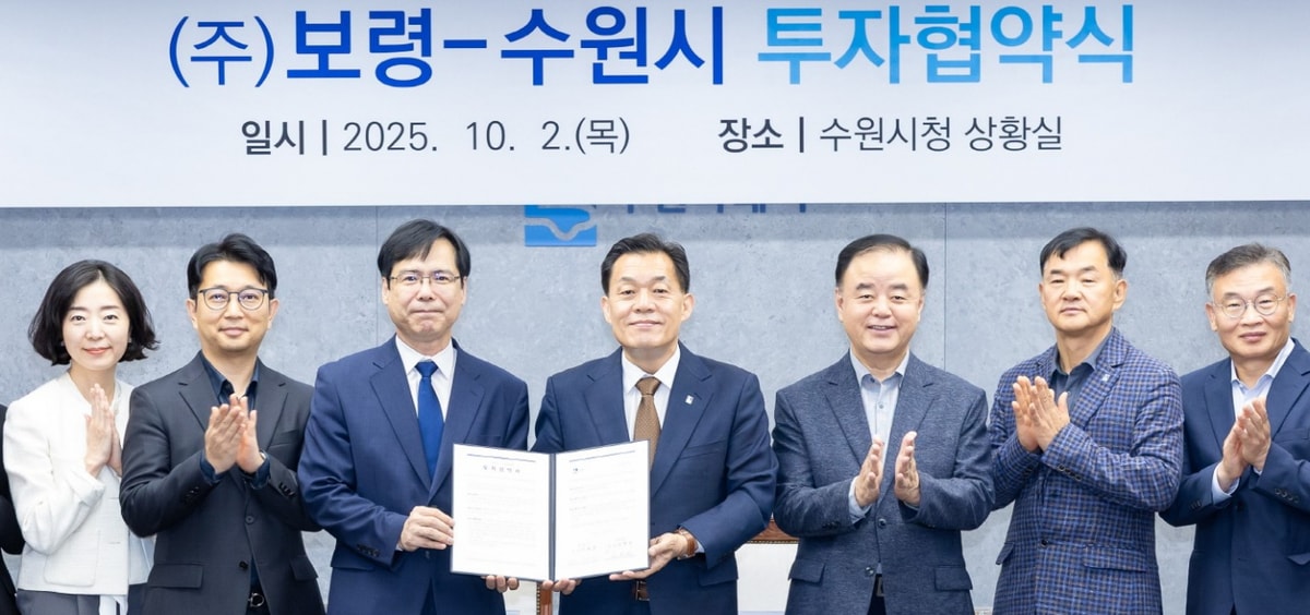 수원특례시는 2일 시청에서 의약품 제조기업 보령과 민선 8기 22호 투자협약을 체결했다고 2일 밝혔다. 이재준 수원시장과 보령 임종래 보령 부사장이 참석, 서명했다. 협약에 따라 보령은 광교에 있는 중앙연구소를 확대하고, 적극적으로 투자하기로 했다. 수원시는 중앙연구소 확장이 원활하게 진행될 수 있도록 행정·재정 지원할 예정이다.