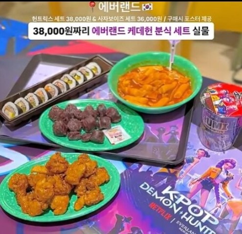 넷플릭스 애니메이션 '케이팝 데몬 헌터스'(이하 '케데헌') 마케팅에 나선 에버랜드가 분식세트를 4만원 가까운 가격에 내놔 논란이다. 한국 문화에 대한 외국인 애정을 이용해 과도한 바가지를 씌우는 것 아니냐는 비판이다.