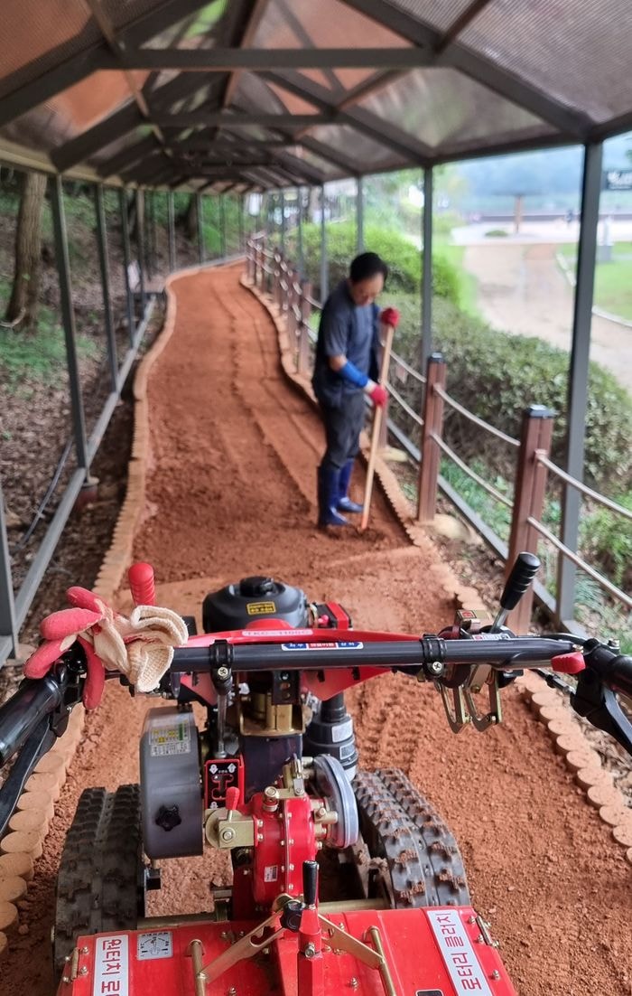 로터리 작업은 해당 관리기기로 황톳길 흙을 10~20㎝ 깊이까지 뒤집는 일이다.