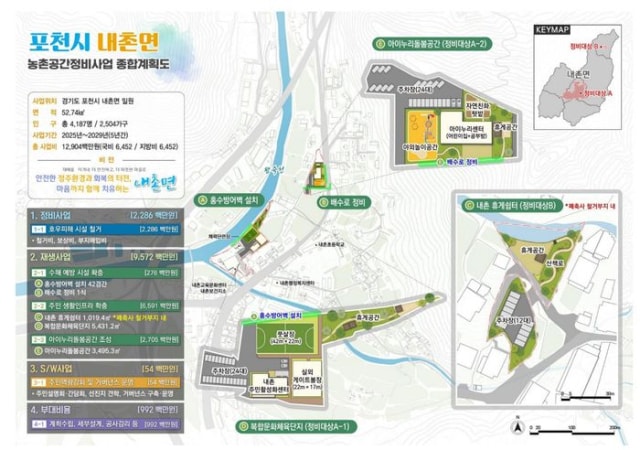 포천시는 농림축산식품부가 추진한 '2025년 농촌공간정비 추가공모사업'에 선정되어, 2029년까지 내촌면 일원에서 추진할 공간정비사업 예산 129억원을 확보했다고 14일 밝혔다.