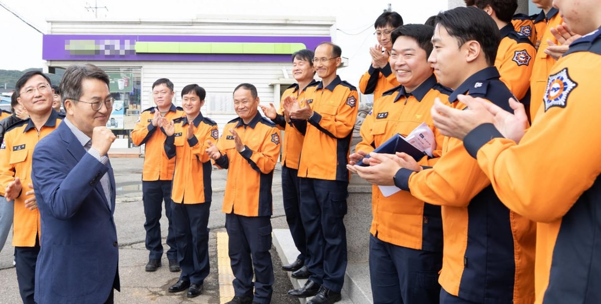 김 지사는 14일 연천소방서 회의실에서 의용소방대, 소방공무원과 간담회를 열고 소방학교 건립 사업에 대해 설명했다. 이 자리에는 김덕현 연천군수를 비롯해 의용소방대, 소방공무원 등 30여 명이 참석했다.