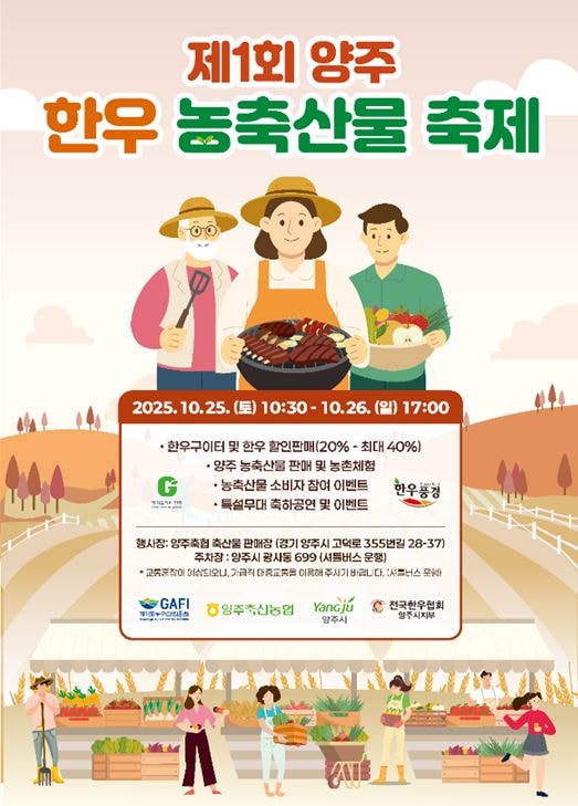 이번 행사는 경기도농수산진흥원이 주최하고, 양주시와 양주축산농협(이하 양주축협)이 공동 주관한다. 축제는 지역 대표 브랜드로 자리 잡은 'G마크 인증 한우풍경'을 중심으로 고품질 한우와 신선한 지역 농축산물을 저렴하게 만날 수 있는 자리다.
