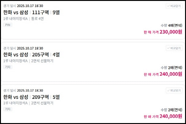 홈팀 입장권인 1루 내야지정석A의 경우 1장당 20만원 초·중반대에 판매되고 있다. 내야지정석A는 정가가 5만5000원으로 무려 4배 넘게 비싼 가격이다. 장애인석을 제외하고는 푯값이 가장 싼 외야지정석은 정가 2만5000원인데, 무려 10개 가까운 20만원 초반대에 판매되고 있다.
