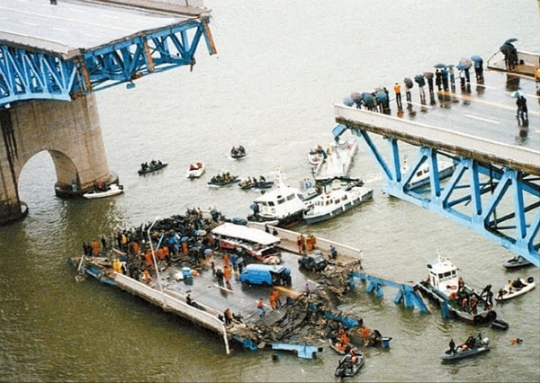1994년 10월21일 서울 한강 위 성수대교가 굉음과 함께 무너졌다. 출근하는 직장인과 등교하는 학생들로 분주하던 오전 7시40분쯤, 성수대교의 상판 48m가 순식간에 붕괴하면서 시내버스와 승용차 등 6대가 한강으로 추락했다. 무려 32명이 목숨을 잃고 17명이 다치는 대형 참사였다.