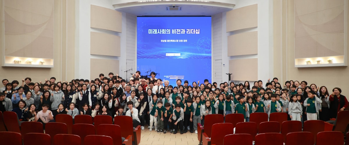 이상일 용인특례시장이 지난 17일 오후 기흥구 신갈동에 있는 새물결기독학교 학생들을 대상으로 '관찰하고 상상하며 새로운 길을 개척하라'는 주제로 열린 특강에서 관찰력과 상상력, 그리고 꿈을 실현하기 위한 도전의 중요성을 강조하며, 어려움에 굴하지 않고 용기 있게 끊임없이 노력한다면 자신이 원하는 꿈을 실현할 수 있을 것이라는 조언과 격려와 응원의 메시지를 전했다.